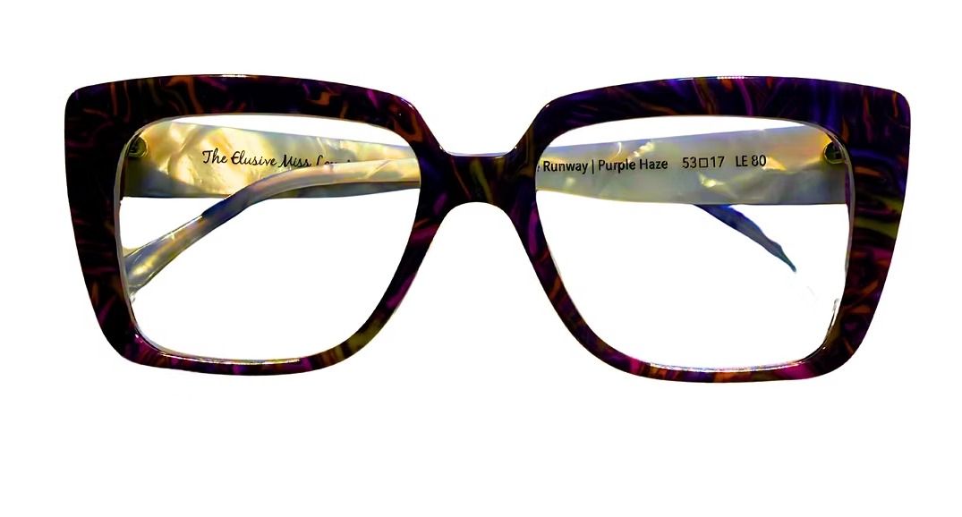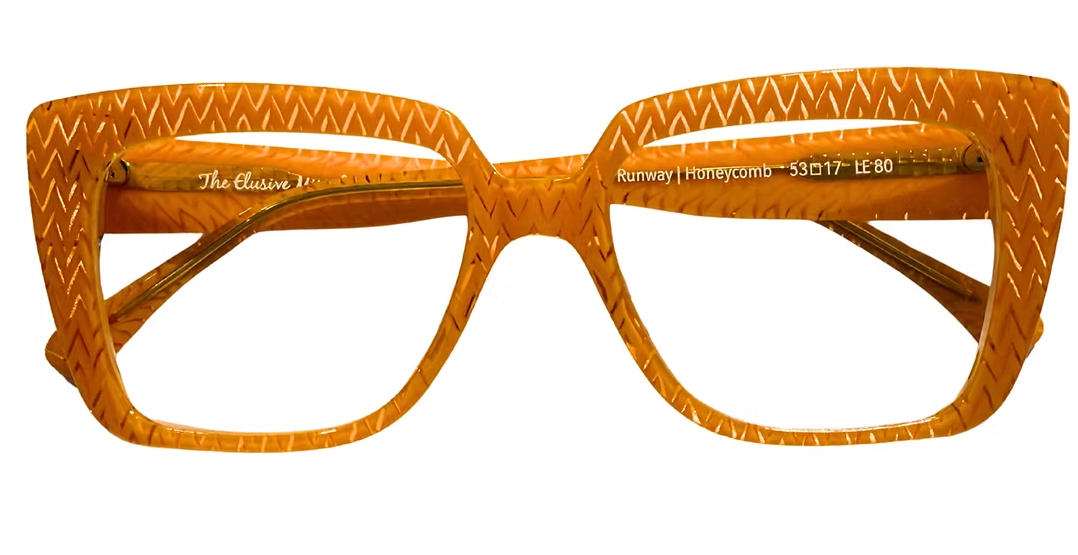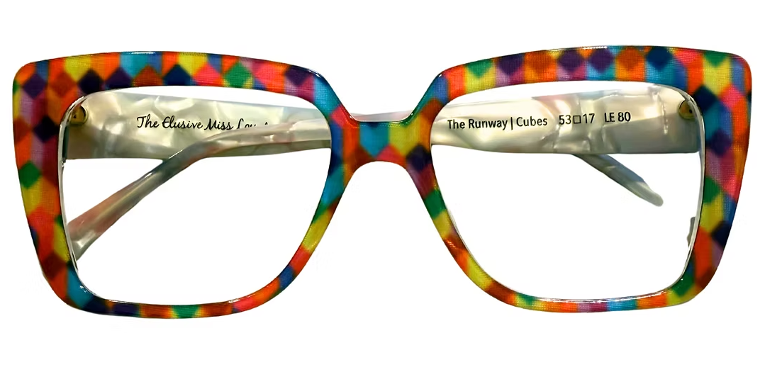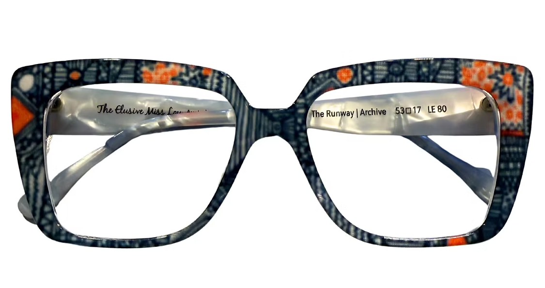 A unique, limited edition, handmade fabric optical frame, also available as Sunglasses